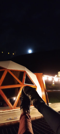Me gustó la ubicación de este glamping, está a 20 minutos del pueblo caminando lo que hace que sea super silencioso, tranquilo y la vista desde allí sea única. Además la atención fue super buena, no teníamos vehículo y nos ayudaron a subir desde el pueblo. También nos ofrecieron servicios de comida rápida en la noche y fogata, está última podría estar mejor ya que por el viento del lugar se hace incontrolable la llama para calentarse o asar masmelos. En cuanto a la habitacion el Jacuzzi es relajante, la habitación es limpia con servicios como nevera, parlante Bluetooth y juegos de mesa. Diciendo todo lo anterior volvería, tuvimos una estadía...