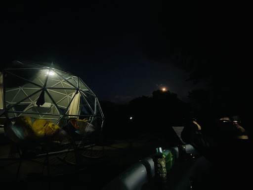 El interior del domo es una mezcla entre confort y diseño. Cuenta con una cama increíblemente cómoda, baño privado, ducha con agua caliente, iluminación ambiental y detalles decorativos que hacen que te sientas en un hotel boutique… pero en medio de la naturaleza. Dormir bajo la cúpula del domo, viendo las estrellas, fue una experiencia mágica.