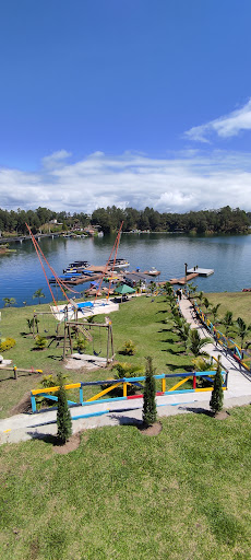 Read moreDurante nuestra visita a la piedra del peñol. Encontramos este maravilloso lugar. Con una terraza increíble en dónde desayunamos muy a gusto en familia, al aire libre con excelente atención. Este lugar es muy completo ya que tienen restaurant con varios ambientes, hotel, venta de souvenirs y recuerdos, muy lindos y variados por cierto, y ofrecen servicio de paseo en lancha, moto acuática y Kayak en distintos paquetes, todo el personal muy eficiente y amable. Se nota que están bien coordinadas todas las áreas de servicio, pues todos manejan información y sugerencias acordes a las necesidades del visitante. Allí desayunamos antes de subir a la piedra, y usamos una atracción que tienen junto al muelle. Una especie de resortera gigante. Dios que adrenalina tan fuerte, no lo recomiendo para personas sensibles a los movimientos bruscos o miedo a las alturas. Wowww es realmente fuerte ser lanzado como una bala al aire, pero lo disfruté a pesar que casi me desmayo. Es electrizante eso. Al bajar de la piedra contratamos un paseo por el embalse, fue una hora recorriendo este espectacular lago, con un guía turístico que nos contaba muy amablemente anécdotas y curiosidades acaecidas en cada sector del embalse. Vimos casas de ricos y famosos y otros puntos de interés turístico. Muy recomendado está actividad. Tienen lanchas cómodas, bien equipadas y los chalecos salvavidas en excelente estado. Y luego almorzamos comimos sancocho de gallina. La porción es bastante generosa y deliciosa. Ese día nos atendieron a cuerpo de rey. Volveré cuántas veces pueda. Me encantó poder desayunar, almorzar, pasear en lancha y lanzarme en resortera en un mismo sitio. Ahhh y todas las áreas están bien cuidadas. Muy bonito el sitio realmente...