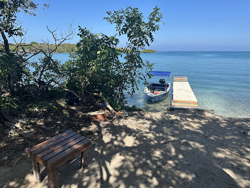 All this said - it is a beautiful place worth visiting if you are open to rustic glamping (and bringing a padlock, locking your items up whenever you’re not in the room, and locking your door with your own lock when you’re gone or when you’re in the cabana sleeping - especially if you’re staying there alone). Some additional info: the hotel requires you to take their own private transportation by boat, which is a pretty big boat. Once you arrive on the island, the staff make you leave your luggage and they forcefully insist on carrying it to/from the boat. In hindsight and with the knowledge that someone literally waited for us to leave our private room and then enter it to steal our things, I would’ve been more insistent that my things stay with me at all times before and after check-in and -out. Just FYI: the water is choppy on the way leaving the island, so I recommend sitting toward the front. There is a cute little shop that you can walk to for big jugs of water and snacks. The shop has an owl (!) outside, as well as some other birds. We went on a walking tour of the island (fully in Spanish) that was interesting and told about the fishing population and economy.