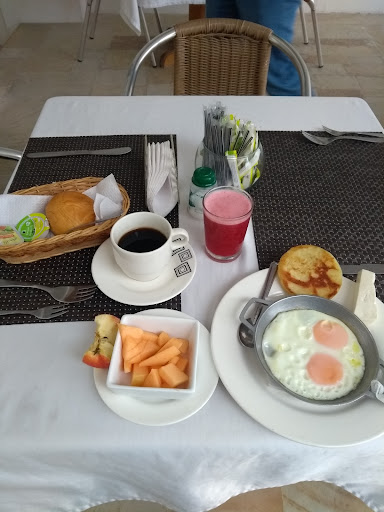 Punto por mejorar desde mi perspectiva El hotel solo te ofrece la opción de desayuno (que por cierto es muy bueno y mucha variedad) entonces por si quieres picar durante el transcurso del día te toca salir del hotel a un restaurante ya que no ofrece por el momento servicio de cocina en las tardes y en las noches