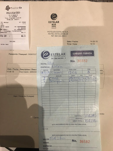 Read moreSadly I have to warn everybody to come to this hotel as we had a very bad experience during our stay. As we checked out we left the baggage we had at the reception to recollect it later as it is usual in hotels. When we came back we realised that the Airpods we stored in the luggage were missing and the zipper of one of our bags was open. immediately We reported the missing item on reception and waited over two hours hours until finally the manager and the security chef confirmed that due the revision of cameras they could confirm that we stored the airpods inside the luggage, however they were unable to identify who exactly from the staff took the airpods out as there are no cameras at the luggage store room. The manager was very ashamed and promised to resolve the situation, however until now they were unable to provide any kind of solution. Even the police was shocked as we reported the case. As we paid a high rate for a 4star hotel, we expected safety which sadly in the Estelar Blue is not the case. I can not recommend to anyone visiting this hotel as a member of the reception is a thief. I travelled all around the world, including latin and centralamerica and never expected...