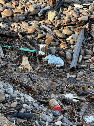 Der große Balkon ganz vorne war dann aber ein Highlight – mit fantastischem Blick aufs Meer. Meistens war es ruhig. Der Strand direkt beim Hotel wird nicht genutzt, da er fast nicht vorhanden ist und aus Kieselsteinen besteht.
