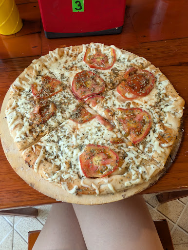 La pizza n'était pas très bonne, car le fromage ou la pâte qui avait un fort goût de chlore. Si ce n'était pas le cas, ça aurait certainement été bon ! Il y a avait des tomates dessus, mais pas de sauce tomate comme on aurait pu s'y attendre. Par contre les épices dessus étaient bonnes.