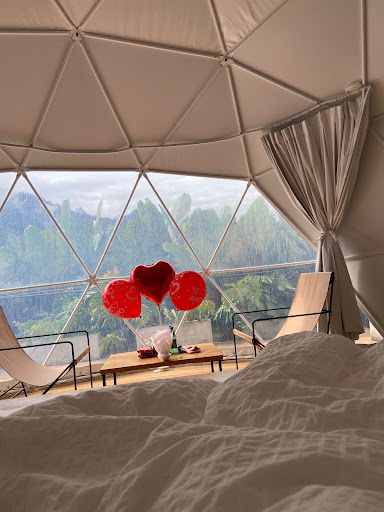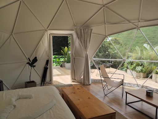 We had the pleasure of staying at Encanto Del Arco Glamping for a weekend, and it was the perfect blend of nature and luxury! The glamping site was situated in a secluded forest area, offering beautiful views and complete tranquility. We stayed in a luxury dome tent, which was fully equipped with a king-sized bed, elegant linens, and a cozy sitting area. The dome had a charming rustic feel with modern touches, including electricity, a mini-fridge with all kind of alcoholic and non-alcoholic drinks and even a small heater for cooler nights.