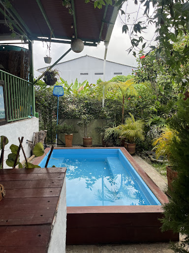 The best part was it was nice and quiet, unlike most hostels here, it was easy to sleep, and work online during the days. It is a great 10 min stroll from downtown, just far enough out to have peace and quiet. Everything clean, and you can buy breakfast and lunch from their cook Marla. Views of Mount covered in snow from their very own mirador. Incredible yoga, gym and meditation space in a guadua pagoda. The hosts are amazing, Milagro, Juan, the owner John an old hippie who speaks perfect English, unfortunately he left before we could have a decent chat. Their kids are cute, friendly and I was invited to paint the incredible mural that Tatiana the yoga teacher is creating! They have 2 dogs and a cat, but they do not bark all the time like many dogs in Colombia, and are very very small and friendly. The dorm 7 only has 3 beds, and I had it to myself some nights, for just 55.000 COP. When something didn't work, the light in my room, the manager Juan actually fixed it the next day! Unheard of here. Laundry service was reasonably priced at 10.000/Kg, and 24 hour turn-around. WiFi worked fine, and power sockets in rooms.