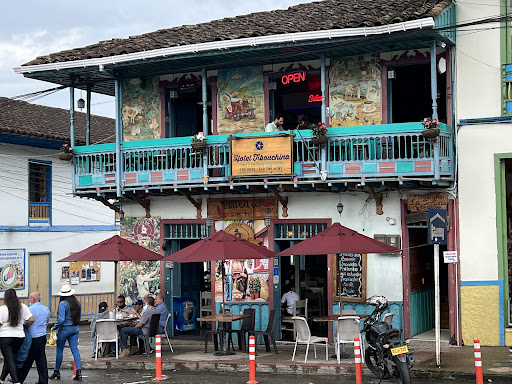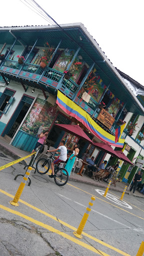 This place is in the virtually tourist free typical Colombian town of Filandia. The hotel is called Hostal Tibouchina and it verges on the cusp of being a boutique hotel. The en-suite arrangements are a bit bizarre but otherwise it is great value at COP$60,000 per night for the two of us including breakfast. The hotel occupies one corner of the town square (dedicated, as always, to Simón Bolivar), the architecture is colonial and here it is pretty much as it would have been in the early 20th century. All of the buildings are nicely painted in bright colours. We are so chuffed with the place that we book a further three days to start at the end of our trip into the Valle de Cocora and Salento. The town square houses a number of small cabaña eateries selling empanadas, arepas, chorizo etc., as well as obleas and other sweet stuff. The hotel is run by a pair of Colombian twins. For a few days we thought it was just one very busy person but then they turned up together to offer us some cake...