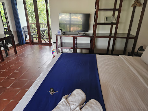 Read moreThis place was not terrible, but I would not stay here again. It is very pretty to be here, but there is no fan or air circulation. There are 2 nice opposing sliding doors, but there is no screen to prevent bugs and I cannot leave them open for safety concerns while I sleep. Also, the room is opened for everyone to see inside so there is no privacy unless you have the dark shades completely closed. The internet went in and out and the walls are VERY thin. There is not a restaurant on site. The biggest problem I had are the roosters and dogs. At 10pm, there is a dog next door that whined and yipped until about 2am not stop. At 2am, a rooster (who sounded old and sick) started his noise until about 9am. The rooster, I do believe, is on the property. Luckily, the second night, the dog only went for a couple of hours, but I could not get a decent sleep with them constantly going and such thin walls/doors. The view is amazing, inside and out! The neighborhood is cut off from the majority of the city but a safe (questionable) walk a couple of blocks to a nearby location to eat. Very walkable to the...
