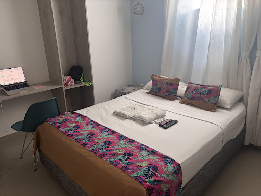 Read moreLas habitaciones son pequeñas pero cómodas, ideales para planes en los cuales solo se requiera del hotel para ir a dormir. La ubicación del hotel permite utilizar el transporte público con facilidad para movilizarse a los diferentes puntos turísticos de Santa Marta. En el sector, te encuentras con muchos habitantes de calle. Sin embargo, los funcionarios del hotel especifican que el sector no es inseguro por tratarse de un lugar turístico. En lo baños se encuentran dispensadores con gel de ducha, acondicionador y shampoo, aun así, recomiendo llevar insumos propios de aseo personal. Cuentan con servicio de restaurante, los desayunos son en una porción moderada, cuentan con fruta, cuando tienen disponibilidad de fruta en el hotel, bebida a elección usualmente ofrecen chocolate, café en leche o jugo de naranja, huevos al gusto, usualmente ofrecen huevos fritos, huevos revueltos o huevos rancheros. Según las funcionarias, este es el desayuno incluido con el precio de la habitación. Nosotros al hacer la reserva por booking, nos decía que el desayuno estaba incluido, al llegar, preguntamos si el desayuno estaba incluido, nos dijeron que si, pero al hacer el check-out nos cobraron los desayunos, bajo la indicación de que no estaban incluidos, es importante aclarar bien este punto. Al preguntar establecieron que cuentan con un menú adicional de desayunos en los cuales se incluye sancocho de costilla, entre otros. Cenamos dos veces en el hotel, ofrecen asados y comidas rápidas, las comidas rápidas no las recomiendo. El churrasco dentro de los asados me gustó, porción moderada y buena sazón. Solicité una decoración romántica con la cual quede satisfecha...
