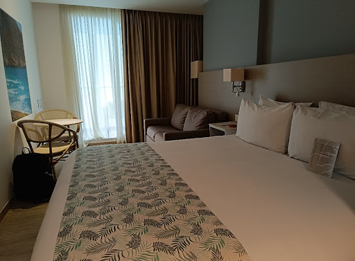 “Top of the Line. The Rooms were Brand new, like never used. Price was great” We got lucky to find this place. An employee in Cartagena told about this new french Hotel in Santa Marta, where we were driving too in a rented car. The ride from Cartagena to Santa Marta in our rental was fantastic! On our way, we passed through Baranquilla for quick shopping of artisan items. Hotel Mercure was just built 6 months ago. I stayed in two different rooms, upgrading from the 6th floor, to the 14th floor for my last two days. Both rooms appeared as if nobody had ever used them before. Super clean, spacious, well organized, cozy, huge walk in shower with rain fall or jet shower, wrap around balcony terrace with a fantastic view, refrigerator in room, wifi, cable TV and a great big king size bed. Walk around bare foot and your feet stay clean. The restaurant in this Hotel is the best food in the entire town, so I ate gourmet dinner there every night. Breakfast is included, as well as free parking. There is access to a pool and to the beach. The front desk personnel and the hard working bell boy do their job with pride. They are always smiling and helpful. Eager to assist. The stay here was beyond anything I expected. Do not take any chances booking anywhere else. From this hotel, we had a terrific drive to Tayrona Nacional Park...two days in a row....where we visited Canaveral and the next day spectacular Playa Crystal in Neguanje. I could not believe the bill to stay at this hotel was only about $70 per night! the dinners were nothing and drank two bottles of good wine at every sitting with gourmet food for about $50. What a dream come true to live in style at such a fair and generous price in such a pleasant and beautiful atmosphere. By the way, this hotel is ecofriendly. Lights turn on as you walk through hallways, etc..