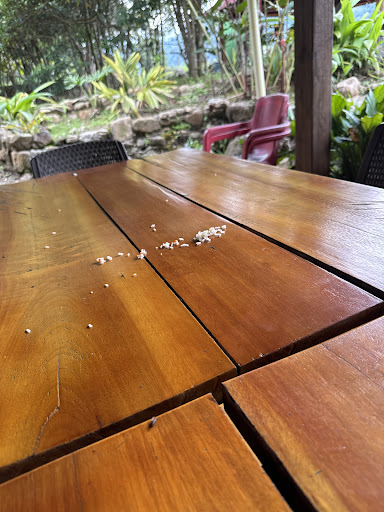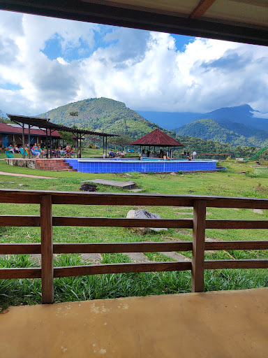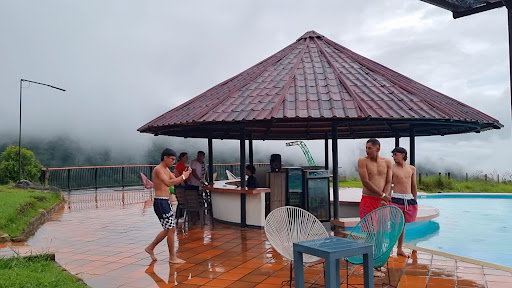 Queda como a 20 minutos de la carretera principal, es una camino destapado subiendo por la montaña, el clima es más frío que caliente. Hay piscina, muy linda pero llueve mucho y por eso no nos bañamos. El paisaje es hermoso aun en medio de la nubes y neblina se alcanza a mirar la llanura. No nos quedamos a dormir, solo almorzamos alli y la comida estuvo normal, pensé que íbamos a encontrar variedad pero no. Al frente hay un lugar con postres, juegos para niños y si quieren adrenalina también, no hay muchos lugares para almorzar por eso...