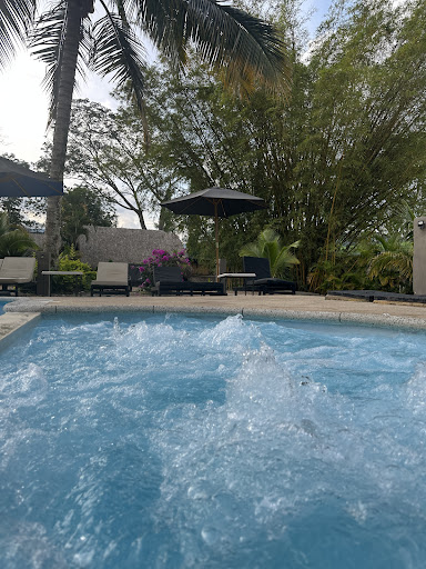 Hermoso y nuevo hotel boutique en Villeta a 2 horas y media de Bogota petfriendly con tarifa extra. Atención espectacular y habitación muy linda aunque no tiene closet donde colgar vestidos, ni donde guardar ropa! Tampoco hay mini bar ni caja fuerte. La zona de piscina muy linda pero faltan mesitas entre las sillas largas. Tobogán pequeño pero chévere al igual que el jacuzzi. Bebidas ricas y bastante variadas. El desayuno se salva pero en cuanto a la carta de comidas, no hay postres y los platos fuertes me dejaron con un sentimiento lúgubre. En cuanto a los precios son completamente exagerados en vista a lo que ofrecen. Yo tuve la desgracia de pedir una pasta con camarones (valor 45.000 pesos) al recibir mi anhelada pasta y probarla me di cuenta que tenía un sabor desabrido. La pasta se notaba de muy baja calidad y estaba demasiado cocinada además de eso era un platillo que carecía de sal. En cuanto al marisco escaseaba. Pero mi mayor desconforme fue la salsa, la cual consistía únicamente de crema de leche. Este platillo mórbido y pertubador me dejo con pesadillas y diarrea. Esperando pongan a la altura la comida, el lugar...