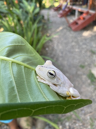 The hostel itself was wonderful. Smack dab in the middle of a beautiful, lush jungle garden, the staff and owners of this hostel have put in a LOT of work to beautify their surroundings. They have planted fruits trees and have cultivated an extremely green space for guests to enjoy. There are beautiful birds that land on the trees, butterflies and in the morning, there is a pure dew on each and every leaf. Outside in the garden there are hammocks for the guests to enjoy during the day, and you may pick the herbs that they have planted to use for your own cooking, as there is a communal kitchen, fridge, stove and pots/pans/utensils for guest use. Location is AMAZING, as it's only a 10 min walk to the National Park beach.