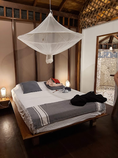 All facilities are like from early 90s - the value for money is unexplainable.|The houses are like made of paper, you hear everything from your neighbours to every car passing by - you can't even think of sleeping without an earplugs or sleeping mask.|On top of this the houses are very open with many wholes which made me feel very uncomfortable - bugs, mosquitoes, all welcome the second the light is on. The net provided is full of wholes.|In the morning we found a snake on the top of our car parked just in front of the house. It’s the snake’s right to be there no doubt but it certainly made me feel even more stressed about the wholes. |Last evening the internet barely worked and we had only cold shower.||The worst however was the owners behaviour. Her dogs attacked me in the morning, super unpredictable creatures. The owner offered no word of apology nor help and instead denied us breakfast because I screamed at her dogs when they were trying to jump on me and barking aggressively. I don’t know what would have happened if I hadn’t jumped on the closest highest point. I was shaken to the core. I've been told that they behaved like this because I stepped on the porch before 7:30, it was 7:20/7:25 and we had a breakfast booked at 7:30.|She was also very inflexible - we had a booked tour at 8:30 so we asked if we can have the breakfast served actually at 7:30 as we booked this time (the day before we had to wait around 30 min for serving from seating). The owner said|"this is not|how it works, at 7:30 you are seating down", she turned around and left with no other words of explanation, and so we didn't have breakfast because the owner apparently value her time and convenience more than the paying customers.||When I posted my review on the portal through which I booked the place the owner responded, calling me names, further offending me and lying about the facts. That all just further showcased her unapologetic rude attitude and lack of respect towards a paying customer and playing a victim where her only role was to support and help. In all my travels I have never encountered such unprofessional and rude behaviour. ||There is plenty of beautiful hotels around Santa Teresa which offer not only a great quality of facilities but most importantly take care of...