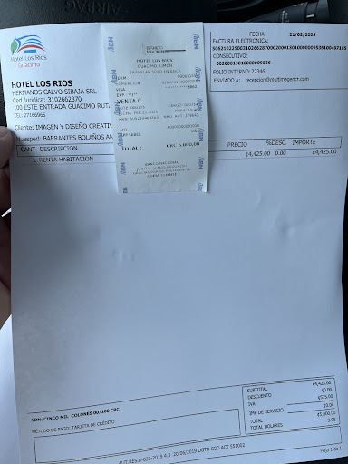 Read moreEn route to Puerto Viejo, reserved a room for 3 adults via an internet booking site. Received a confirmed reservation from the hotel as well.. Arrived to find they were overbooked and nothing available. WHAAAATT?? one of our party speaks Spanish so language was not the problem, simply they did not have a room. But were told to wait, we went to have a beer. Then first of all, we were told there was a room, but not made up (it was almost 6 p.m.) , then we were told, well there was a room but it had a broken mirror in the bathroom. We insisted on what had been confirmed, but were stone walled. The manager beat a hasty retreat to the back room and allowed the inexperienced receptionist to take the flak. Finally our waitress that brought us the drinks suggested another hotel and agreed to call for us !! AND she would take no tip for her efforts! Give her the manager's job!! We booked at this other place, never to return to Los Rios, and to caution all others the same. We are in Costa Rica each year and travel a lot. This is not typical of Costa Rica but do steer clear of Los...