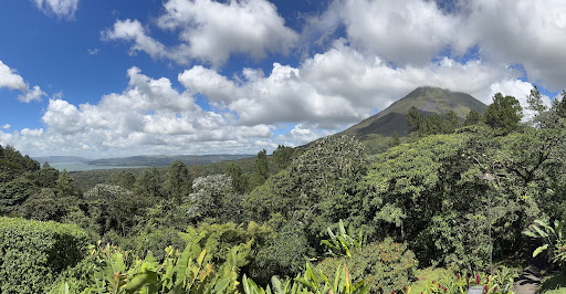 Read moreWe enjoyed perfect weather and saw the entire volcano which is pretty uncommon. Monkeys, toucans, snakes and coatis all made appearances. We walked to the frog pond at night with flashlights and got to see several kinds of frogs and bats. ||The cafe made awesome smoothies. It was also a great spot for a snack or lunch. The restaurant menu is online so no one should be surprised about the prices. The restaurant wants to be fancy. I changed from hiking clothes into a dress and it made a nice change. My husband ordered a salad that was awesome and huge and I ordered the lemon chicken which was sauce covered and absolutely perfect! They don’t serve the mashed potatoes or broccoli as sides like the states but a few pieces artfully arranged. The staff are polite but not super warm, more stoic and professional, and you have to request the check when finished. Marcella was one server and she surprised us with a sample of a liqueur that was so sweet and delicious! Everything was clean! Breakfast is free and includes the usual cereals and fruits plus you can order hot meals like pancakes or french toast. I had an omelette that was stuffed with peppers and onions. ||We had the junior suite and these are right beside and below the restaurant. Fantastic view! Clean! Huge! Has a mud room with closet. Soothing warm colors, comfortable couch, and a fridge sink and coffee station. The bathroom was light and bright with white tile and beautiful stone work. Don’t flush toilet paper in Costa Rica. The hot water takes a while. The shampoo and soap is on the far wall from the rain shower head and that was weird. I had to walk out from the water to reach it. The towels are thin and scratchy but clean white. Electricity will go on and off which is normal for Costa Rica. Wi-fi is available in room and worked fine. ||The morning free hike was just okay. The guide was actually kind of grumpy. He was late. Then annoyed that one guest went to get a to go coffee. Little bitty kids were on the hike with us and he did nothing to engage them. He kept going ahead and rushing the group. He didn’t put much effort into finding animals. He acted like he’s been doing the same hike for too many years. He did help us get pictures and he set up the scope for a close up of the volcano. I would not pay for the same hike. It’s free so not really a waste of time, but it’s lame. We saw a frog. And plants on the trail. He takes the group to the frog pond but this spot is best at night so I don’t really get it. ||The waterfall is beautiful and we spent time enjoying the area around the falls. Other hikers looked and left. ||We loved the property and the view! Some visitors never see the volcano and we were so thrilled to have clear views. The monkeys were a highlight but they are completely wild so they don’t get close or come to the room. We spotted them on the river trail and in the trees on the edge of the main lodge. Definitely need bug spray especially on the river trails. ||At check out they keep you until housekeeping checks the room. At check in they offer cool damp towels and a fruity drink but the process felt rushed. I enjoyed the drink and thought this was a nice touch. They are strict about the check in time...