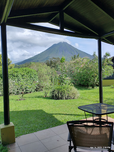 Read moreMy husband and I enjoyed our stay here just outside of the La Fortuna strip, nice to be out of that fray, but still be a short drive to things, a good restaurant for lunch near by (the soda, go left out of campo verde), and closer to Arenal. the cabins were good. They weren't sealed super well so I was worried about bugs but there were none. The view out the window of the surrounding garden and/or Arenal is wonderful and the birds are very entertaining. We sat out one slow morning on the patio and watch toucans, vultures, hummingbirds and a zillion other kinds of birds. The buffet breakfast is nice and easy. The A/C worked well, there is a safe and a fridge, no microwave. The cabins are a little dark and dreary on the inside, they just need better lighting and the one table is too small to even play cards on, but they are still cute cabins in a nice setting. I didn't...