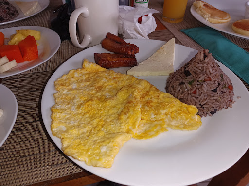 Read moreWe stayed here in October for 3 days in this tucked away and quiet hotel. Part of the hotel was being renovated but no loud noise after hours. The room was a little old but everything essential is there. The soap, shampoo and conditioner is sufficient, but no amentity kit or extra water. A clothes rack is provided so able to hang wet clothes (e.g. from the rain). No onsite laundry service but the hotel can send out clothes to 3rd party laundrmat. 3 breakfast options available with a nice fruit plate to start, then 1. Rice/beans; 2. pancakes and bacon; 3. toasts and sausages. All with choice of 2 eggs; all made to order. Juice and coffee and tea also avalable. The best part of the hotel is the resident family of sloths! Don't have to pay for a tour to see them. Hotel staff more than happy to show wild life around the hotel, including frogs, birds and of course the sloths (well, mostly just their fur)! We get to see the sloths everyday and said goodbye to them when we left. Maybe because we were there during low season, hotel also offered a 1 day tour for $110, included 4 activities. We had already booked elsewhere in advance for 2x as much - so maybe ask them about their tour deals before booking seperately. I...