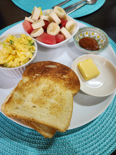 Enjoyed a 3 night stay here in March with our two teenage boys. |We were in rooms 1 + 2 , which was booked as the Family Room. It was through a little sliding frosted glass door, and had two separate bedrooms with a bathroom in between. One room was a queen bed and the other had two singles. Perfect for families with two older kids. Single bed room had a TV with local channels, the queen room had no TV. |Bathroom had a shower which had plenty of hot water but the water pressure is very low. You also cannot throw your toilet paper in the toilet here, has to go in the garbage. There was body wash in a dispenser in the shower, but no other amenities provided (such as shampoo, conditioner, etc). There was no hairdryer either but I did see someone returning a hair dryer to the front desk, so it seems they have one you can borrow. Pillows were a little hard and lumpy but the sheets were very soft and we were plenty warm (it gets cold in the mountains at night)|Breakfast was included and served on site in a small dining room. The hotel only seems to have 6 or 7 rooms, so there was always space to sit. Breakfast was a choice of either pancakes or eggs+toast. Both are served with a small bowl of fruit and tea/coffee/juice |Staff is lovely. Seems to be maybe a family who owns and runs it. They were all very friendly and helpful whenever we had questions. |Location is great as it’s not too far out of the way but a little quieter than being right downtown . You can easily walk to restaurants and the little downtown area of Santa Elena. Keep hotel distance in mind as something important because even though things look close on a map, it is all steep hills and you don’t want to walk too far. |Overall a great stay and good value....