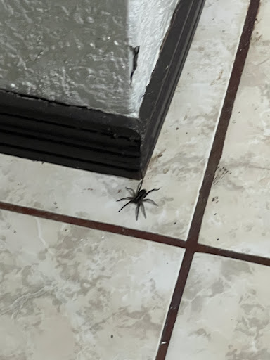 En cuanto finalmente llegó, tuvimos que abrir sabanas y apartar la cama para poder buscar la araña ya que obviamente entre tanto se había escondido y efectivamente la araña estaba detrás de la cama.