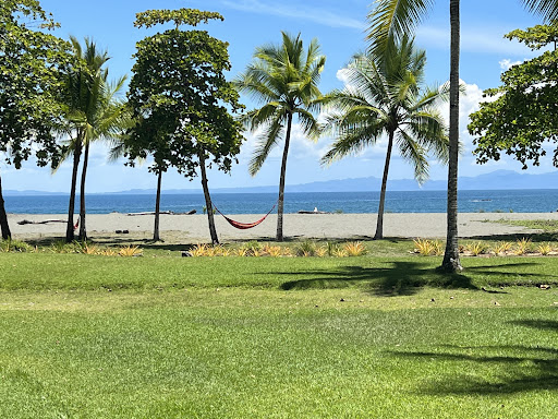 Read moreThis is a very private resort with access to more beach than you could use. It's located about 15-20 minutes from Puerto Jimenez on a dirt road. When you drive up the lane to the resort you feel like you're in the middle of the rain forest. The buildings for the resort are linked with dirt trails winding in the foliage. We stayed at one of the rooms above the Pearl of the Osa restaurant. The location was great with phenomenal views looking out onto the Ocean. The room was a little noisy but comfortable and clean (with AC). You could easily hear other guests come up and down the stairs, in the restaurant downstairs, and in the adjacent rooms. The buildings fit the setting perfectly. There are several cabanas located through the resort. The resort also has a spa open air building for morning yoga, exercise, and massages. I thoroughly enjoyed the massage, and my wife thought it was the best massage she has ever had. There's a pool and "hot" tub (it's not really hot, but with the weather here you wouldn't want it to be), as well as showers and bathrooms nearby. There are walking trails and shades along the beach, with many little nooks where you could rest, meditate, or just breath in the atmosphere of Pura Vida. Service was great and friendly. The resort has kayaks and boogie boards that guests can use. There was also an art studio, but I don't know if it is available to the public. There's also a tennis court for the guests. I think the main office might have a kitchen that guests can use, but I'm not sure if that's advertised. When we first arrived we walked out to the beach and couldn't see anyone for miles. We were able to kayak out to the reef, hoping to snorkel, but stayed in the kayaks instead when we saw dolphins jumping 100 meters away. The boogie boarding was great. The sand at the beach is dark, and a little more coarse with lots of pebbles in the sand. The resort arranged the massage and a tree climbing excursion for us (highly recommend- we saw several kinds of monkeys, tree frogs, snakes, birds, etc. on the hike to the very large tree). It was convenient to get them scheduled, but you need to be diligent in following up on confirming the excursions. There were mosquitoes at the resort (it is along a coastal mangrove swamp), so bring some spray. We also forgot a sentimental item at the hotel and the staff went through the effort of sending it to the San Jose airport so we could pick it up before we left...