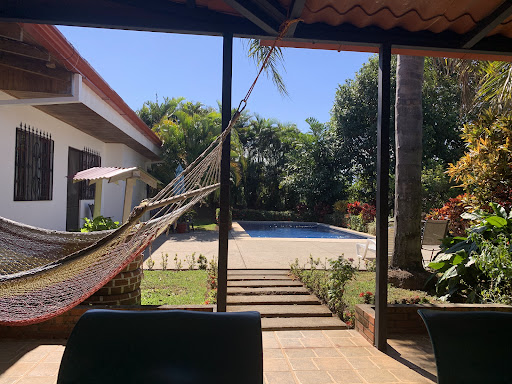 This B&B is a circa 10 minute drive from the airport. We booked the double with private bathroom and our room was spotlessly clean with nice bed linen. Interiors a bit worn but hey, seems every mid-range place in San Jose is the same. Common areas nice but the real wow of this place is the garden and pool area. Lush garden with hammocks - it’s crazy to think you’re in the middle of San Jose!||||The owner was very personable and the free breakfast was nice. Many say that Alejuela is unsafe at night. We can’t comment as we got a taxi straight there and then went to bed. There are many takeaway places close by so if you arrive in the evening then getting a take-out pizza seems a good option, save wandering about feeling a bit wary. A very kind family staying at the hotel had done just that and gave us some leftover pizza; having arrived late after a long bus journey, we were so grateful we didn’t need to trek outside!||||Tip; if getting the public bus to San Jose from Monteverde, it stops at the airport first and then goes on to Terminal 7-10 in downtown San Jose. I had no idea it went to the airport (the bus websites are pretty vague) and we couldn’t alight there once we’d realised as our luggage was in the wrong compartment. So we added an hour of unnecessary journey time to our day 🙈. Terminal 7-10 is in the red light district of San Jose so jump straight into a taxi if you do arrive there. We made the mistake of wandering around looking for food and a couple of people stopped us telling us to be careful.||||All in all a convenient stay for...