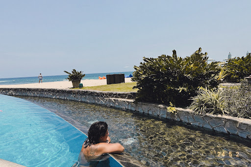 The beach at the resort is pretty rocky - if you're looking at the ocean, head to the left down the beach. You'll have some rocks to traverse (not difficult at all, but if you have balance issues, you may need a steady hand to assist) -- it will get you to Hacienda Pinilla's beach club (10 minute walk on the sand), and you can hang out there for $10. You can saunter down the coastline even more to Playa Avellana where you'll find local restaurants, lots of swimmable beach, and tons of surfing. Highly recommend doing this - the walk is beautiful and there are more affordable dining options. Lola's is great!