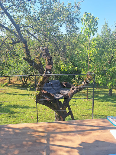 Read moreDas Ferienhaus liegt etwa 30 Minuten außerhalb von Zagreb. Es scheint sich in einem ehemaligen Obst- bzw. Weinanbaugebiet zu befinden, das sich allmählich in eine Gegend mit Wochenend- und Ferienhäusern verwandelt. Das Haus liegt auf einem großen, wunderschönen Grundstück mit Apfel- und Birnbäumen. Zudem gibt es einen richtigen Pool sowie einen Whirlpool auf der Terrasse. Das Haus erstreckt sich über drei Stockwerke, von denen jedes ein großes Zimmer, eine Toilette und eine Dusche bietet. Das untere Geschoss hat direkten Zugang zur Terrasse und dient als Küche, Esszimmer und Aufenthaltsraum. Das zweite Stockwerk verfügt ebenfalls über eine kleine Kochzeile, ein Ausziehsofa, eine Infrarotsauna und einen Balkon. Wir haben diesen Raum als Kinderzimmer genutzt. Im dritten Stock befindet sich das Schlafzimmer mit einer Leseecke. Alles war sehr sauber und gepflegt. Das Haus und der Garten sind liebevoll eingerichtet und dekoriert.