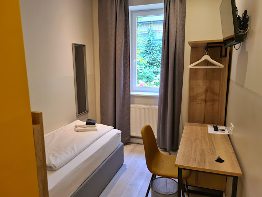 Cute little bed and breakfast hidden in a courtyard next to a big street with about 10 rooms. The single room was enough for one person with practical furniture to make use of the available space. The B&B was about 15 minutes walking distance to the city center or 5 minutes by tram which had a stop close by. You'll also find cafés, restaurants and supermarkets in the area