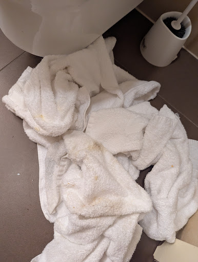 Night staff and cook were nice about it. Night staff provided new clean towels (on my request) because the other ones were dirty with vomit.