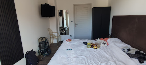 We arrived after 21:00, the owner came directly when I called to help us out and she gave us the keys and every other helpful advice, like where to eat, etc. etc. The owner was very nice, helpful and kind! You don't find it that often! She wanted to help us out and was super friendly and nice!! The room was perfect! It was clean! The bed was very comfortable, it had a TV, a shower which was also very clean with shampoo and bathroom cleaning products like cotton etc., it also had slippers which where in a package, fresh, clean. The hotel is family and also pet friendly! That was a huge relief, because it was very hard to find a room which was comfortable and allowed to sleep with a pet inside. It had also an air conditioner, which was helpful because it was hot outside so the room was fresh and cool. It's not far from the highway, which is also very good when you are travelling and just need a sleep. In a distance 5 min away (walking) is a place for breakfast, coffee, a super market, restaurants, Mc Donald's...