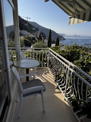 Read moreGreeted by host's daughter Maja who offered us juice, coffee and water. Able to park right by the residence where the family lives on the ground floor and rests out upstairs rooms. Lovely covered (grape vines) veranda where we sat, drank wine and visited with our great host Milan.Our room was medium size all in white with a refrigerator, good lighting and a flat screen TV (no English news station). Our balcony had a table and chairs and a wonderful view over part of the old town and wall, water and Lokrum Island.||||The bathroom was tiny and toilet and shower cramped but the bed was comfortable with nice linens.||||Got a ride into town one day and to the cable car station another. We'd been to Dubrovnik before so opted to visit Korcula one day. On all our return from town negotiated with local taxis as the walk up was too much for us.||||Upon departing and heading for a place closer to the airport for our next day early morning flight, Milan encouraged us to visit Civtat, an old Greek town on the coast. He also recommended a local restaurant where we had a delightful meal of the best lamb on our trip and seated by a stream and waterfall. The best part of our stay was the view and our wonderful host. Definitely...