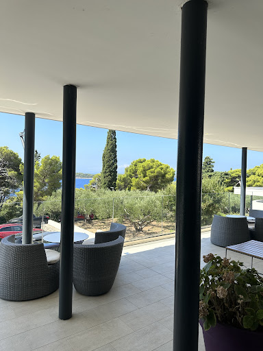 The hotel is relatively modern design, overlooking the bay. The reception is up another set of stairs from the road - a simple white wall and glass interior with monochromatic splashes of colour and furniture. The staff always seem busy and pre-occupied, so they sometimes come across as indifferent and rude. We found them helpful, particularly when booking tours/excursions.