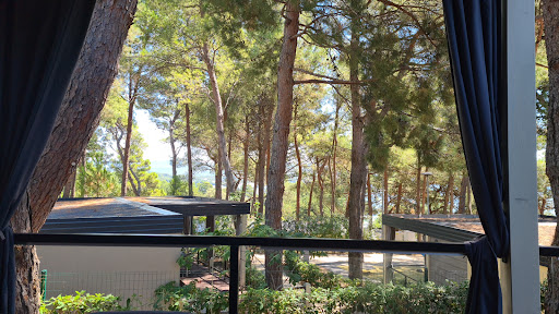 You can easily spend a wonderful time here without ever leaving the campsite. It feels very safe, with security guards and cameras all around. Restaurant prices are very fair, and the food is absolutely delicious. The campsite is full of lush, beautiful greenery. You can even rent a motorboat!