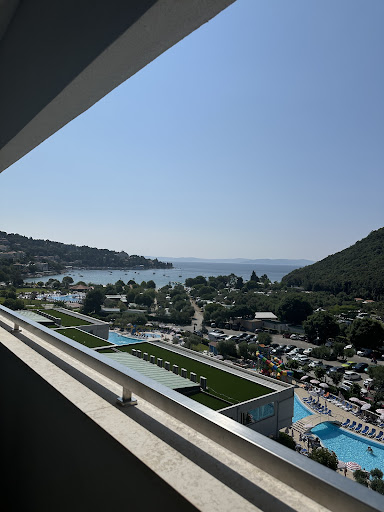 Read moreThe hotel has 4 stars, but realistically, I would give it 3. The many services and activities (indor and outdor pool, spa, fitnes, tennis court, mini golf,...) makes it a 4-star hotel, but the hotel rooms kind of disappoint. We were told we have a balcony with a view but got a nice suprise (attached picture). In the room is a mini fridge, and only two free electric sockets. Those are not on each side of the bed. (Additional sockets are for the fridge and TV). The AC is very weak. During the visit, it was running all the time on max, yet it did not cool down the room much. Still, it was bearable to sleep, but for a 4-star hotel, it should be better. On the other hand, the restaurant was very much in standard with a 4-star hotel. Great selection of food to choose. It is an open kitchen with a wide selection that also changes from day to day. Liked the open bar for drink (wine, beer, and also non alcoholic drink). Tables could be a bit better cleaned after one eats (bread crumb leftovers on napkins). The staff is very friendly and professional.