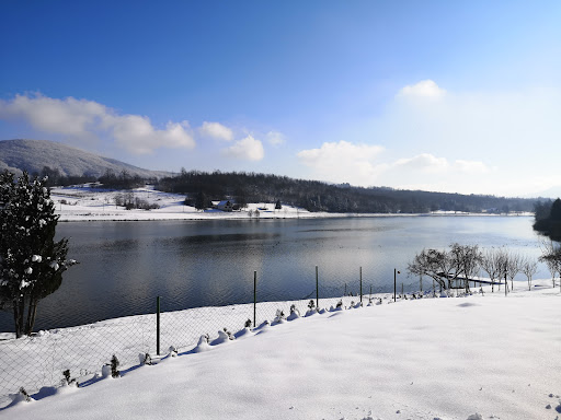 SVAKAKO POSJETITI!!!! Kuća na jezeru pruža bezbroj mogućnosti za svoje goste, bilo da se radilo o obitelji sa djecom, momačkim i djevojačkim večerima, običnom bijegu u prirodu od svakodnevnog stresa ili romantičnog vikenda! Također je nebitno u koje godišnje doba dođete jer svako od njih ima svoje čari! Kuća posjeduje sve sadržaje koje gostu trebaju za opušten i ugodan boravak, nabrojiti ću samo neke: Kamin (peć) na drva u dnevnom boravku - vatra da takav izuzetan ugođaj i zaokruži cijelu priču drvene kuće, Roštilj (vanjski) zidani - natkriven je tako da vremenski uvjeti ne mogu utjecati na bilo koju vrstu gurmanske priče Igralište za djecu u dvorištu - ljuljačke, klackalice, stolni nogomet.... Mol - drveni mol na jezeru gdje se može sunčati, pecati (čak ima i štap za pecanje), piti kava....uživati Čamac - drveni čamac kojeg se može koristiti za vožnju jezerom (veslanjem naravno)...za one odvažnije........ Stol i klupe izvan kuće, te stol i klupe kraj jezera.....