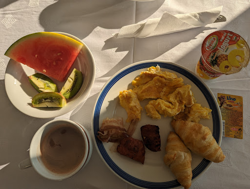 This hotel is very conveniently located. Within walking distance in 5-7 minutes you can walk to the bus station or port. At the reception we were greeted by a polite hotel employee. Quickly and professionally issued and settled in the room. The room was clean and air conditioned. The room has washing accessories, clean towels, hair dryer. Everything you need for a comfortable stay. The bar on the ground floor is open in the evenings. There is also room service. In the morning we were greeted by a warm and delicious breakfast buffet. Sufficient and varied selection of food. You can choose the taste of breakfast yourself. Various egg dishes, sausages, bacon, cheese, olives, fresh and stewed vegetables, sweet and unsweetened yogurt. As well as cereals, milk, various pastries, butter, jams, honey. You can choose deliciously prepared coffee in the coffee machine to your taste and tea. And, of course, fresh fruit. The pleasant and peaceful environment of the hotel is suitable for holidays with or without children. We were pleasantly surprised by this hotel. And...