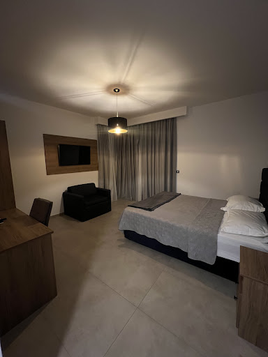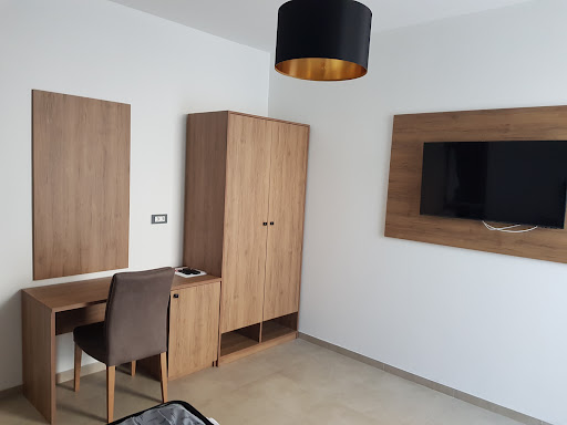 Read moreDer erste Eindruck war sowohl von aussen wie auch von innen sehr gut. Es ist noch ziemlich neu und modern. Das Zimmer ist sehr geräumig und modern eingerichtet, neben Bett und Kleiderschrank gibts noch einen Schreibtisch und eine kleine Garderobe und natürlich einen Fernseher. Leider gibts sonst keinerlei Möglichkeit etwas abzulegen. Auch im modernen Bad gibt es ausser am Waschbecken keine Ablagen. Es gibt einen kleinen Handtuchhalter beim Waschbecken, dort ist aber der Fön und die Ersatzklorolle deponiert. Unsere Terrasse war miniklein mit 2 Stühlen und 1 Tisch. Da keine Umzäunung oder sowas existiert, kann jeder dorthin. Im Schrank liegt eine zusätzliche Wolldecke und ein Kissen, welches aber schon Stockflecken aufweist. Die Klimaanlage ist sehr gut. Leider hört man von den Nachbarn ziemlich laut, wenn sie ihre Zimmertür öffnen und schließen sowie auch die Toilettenspülung. Was die Sauberkeit betrifft, muss man sagen, die gibt es garnicht... die gläserene Badtüre ist über und über fleckig, an der Klospülung sind braune Flecken, der Boden ist staubig und haarig. Wenn man den Wischmop sieht, ekelt man sich und man versteht warum der Boden nicht sauber werden kann... Das WLAN funktioniert nur sporadisch. Parkplätze sind vor und hinter dem Gebäude vorhanden, man muss aber sehr eng aneinander parken damit für jedes Zimmer ein Parkplatz übrig ist. Frühstück gibts auf der anderen Straßenseite bei "Fastfood-Jonny", man kann wählen zwischen 1-Toastsandwich und Crossiant 2-Omelette 3-Schinken und Spiegelei 4-klassisches Frühstück mit Schinken, Käse, Butter, Marmelade u Streichkäse. Dazu gibt es 1 Heißgetränk...