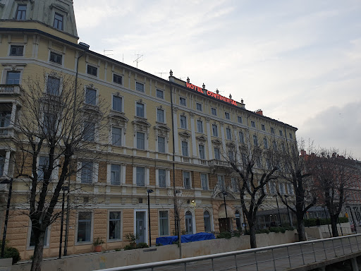 His is a review of tow hotels: the one in which you sleep; the other in which you eat, drink, and watch the world go by.||The first hotel is pretty dreary--a Titoesque relic from the good old Cold War days--spartan ill-lit, a place to hurry from.||The second hotel--the ground floor where Reception nis, the restaurants, the outdoor cafe, the river running alongside the hotel, , the tree-shaded park, the people watching, the downtown bustle, and the server staff is delightful. . The kitchen is excellent (pastas, and seafood especially). the wait staff friendly, although their English is very limited. The hotel itself is a gorgeous relic of a 1880s Austro-Hungarian gilded age. ||I was an inadvertent guest at the hotel for 16 days while mu wife lay nearly comatose hospital with a brain injury. She...