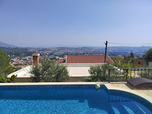 We stayed at Ana and Petar's villa in May 2023 as a group of 11 family and friends, including my two year old son. The property is set up across two floors (the third floor is host storage), with three bedrooms on each of the two floors, and each floor with its own living room. The bottom floor living room opens up onto the pool and outdoor patios with breathtaking views of Solin, Split, and the mountains.