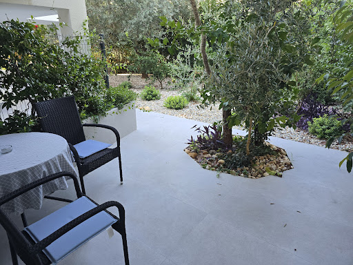Read moreЧудові апартаменти на першому поверсі. Чисто, затишно. Окремий вхід, своя тераса з видом на сад з оливковими деревами, персиком, мандариновим та гранатовим деревами. Є все необхідне пралка, посуд, праска, кондиціонер, холодильник, бойлер, гарний wi-fi , сушарка, є навіть пляжна парасолька. Близько автобусна зупинка і пішки до пляжу 10 - 15 хв. Поруч піцерія і мінімаркет. Привітна власниця, постійно на зв'язку і рада допомогти. Можливе пізнє заселення, що в моєму випадку було дуже актуально. Дякую за...