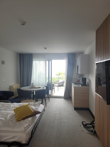 Read moreA decent appartments with an excellent service on an entirely wrong location for us (family with 2 kids). Nice and well equipped rooms, rooftop pool with a breathtaking views over the Baska Voda's bay. It is just a few steps from the beach, however right above a disco beach bar that runs everyday until 2am. You can forgot sitting on the balcony and reading a book or drinking a wine and listening the sea (which was why we booked this appartment ☹). You even hear "tuc-tuc" when the windows are closed... However if you are a party person, this a...