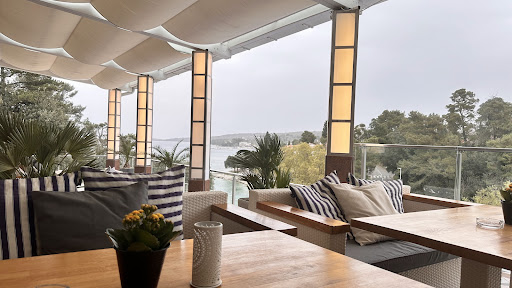 The hotel rooms were a nice size and nice and the location was quiet. We have a dog and he felt very comfortable there and didn't really hear anything. The showers are tiny but everything works (including the air conditioning!) and it was a nice room overall. The front desk staff were super friendly and helpful. One very nice lady helped us to find dog beaches and dog walks for our pup and helped us by finding a place near the pool deck (dogs not allowed on the deck itself) that we could go and take turns at the pool. The food was edible though maybe not what I would consider amazing. We ate breakfast there every morning. I am vegetarian and there is plenty of food for vegetarians at breakfast (cheese, fruit, eggs, polenta, etc.) Dinner not so much. We paid for half board and only used it once for dinner. The dinner buffet was okay but you can find better food out on the town. The beach area is really nice. There are signs everywhere saying dogs not allowed, but no one minded at all that he was there. We took him to the restaurant, the beach bar and the umbrellas and every staff member was super friendly with him. The beach floor is rocky and sandy but no urchins in front of the hotel which is nice, because there are tons of them in other beaches nearby. There are fun things to do all around the hotel beach. We rented stand up paddle boards but there are also many other things to rent and do. The pool is also lovely. There is an indoor and outdoor pool, and a spa as well. All very nice and clean, etc. One weird moment with the beach staff- the guy in charge of umbrellas asked us for our key card for the hotel and demanded one with a room number on it (they are just plain white keys). We handed him our key and he said we could have made it in "any workshop" haha. Other than that the staff were super friendly and helpful. I would recommend this place overall. We walked a lot along the beach fronts and this hotel definitely seemed to be the best...