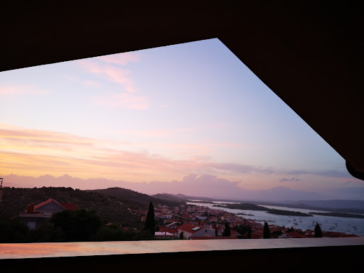 The hotel is located higher on the mountain, so the view is amazing to the sea and the Kornati islands. At breakfast to eat at the restaurant terrace is like looking at a postcard. Breakfast is good, nice selection of food, we loved the omlett and the cherry drink. Staff is very friendly and helpful. The hotel is basic but well kept, clean, and has everything you need. ||The indoor pool is small but good alternative if you don't want to go to the beach. There is a ping-pong table we played after every breakfast. The gym is well equiped too. ||The room looked just like on the photos. The bathroom had a nice big shower. AC and wifi work well. The view from the room balcony was amazing, we just sat out there and admired the landscape. ||The parking was easy, the hotel has a nice parking lot in front. ||The beach is a 10 minutes walk, the city center is a 15 minute walk. Be aware that you walk up and down the mountain, so you better wear comfy shoes. When we were there the figs were ripe at that time and the hotel had a tree too, so we could eat at the garden fresh figs, but as you walked around the city there were a lot of trees too. ||Great value for money, I...
