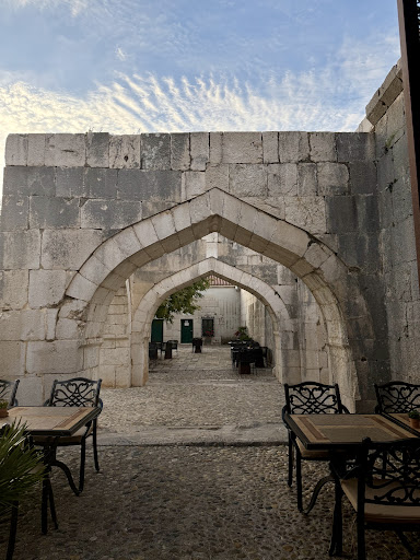 A beautiful place, on the remains of a former mosque. 2-course dinner, appetizer and main course. The appetizer in their menu did not disappoint, in fact it delighted us. Incompatible lamb and prawns😊. Sheep sausage and prawns, with home-made bread (olive oil), chickpea and olive spread, with delicious Pošip. The main course after 10 minutes because we were already almost full with this appetizer. At first, when you see the plate, you think it's too small, it was more than enough for two. The main stars of the evening, sea bass and cuttlefish. Sea bass fillet with potato and leek cream, porcini mushroom demiglas, and orange was a rhapsody of flavors. The sea bass fillet was beautifully baked, the skin was crispy. Cuttlefish with potato cream and peas in mint and lemon sauce. A refreshing combination with enough lemon to elevate the dish to another level. And finally, baklava with pistachio, sweet, not too sweet, flavors of the East that rounded off the whole dinner( one slice in 2 plates).Extremely pleasant staff, hospitality at the level, along with the whole atmosphere of Han.. For every recommendation, definitely, don't miss this experience❤️ Price: 100 euros (appetizer, 2 main courses, dessert, brandy, 4 rounds of wine by the glass, liter of...