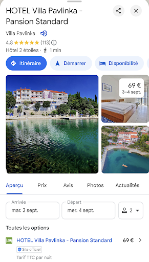 Very dishonest reception and service ! I let you judge by yourself with my experience. I came there because it's impossible to book directly online. The price on Google was low (69e for two people for the night) and comments seemed good. The lady that received me said it's the price per person and she said it's the way in every hotel. After that I said ok, she said that she only have four people rooms so it's 4 times 69e. I replied that I was not interested and she said oh maybe I have a three people room left so 3...