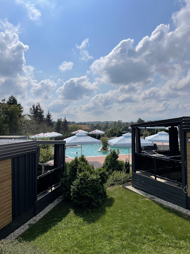 The pool is really nice! We were so surprised at the lovely quality. Other aspects of the grounds are also nice and were very under utilized during our stay. We enjoyed the mini gold and the playground and trampoline net by the tree houses looked great for kids.