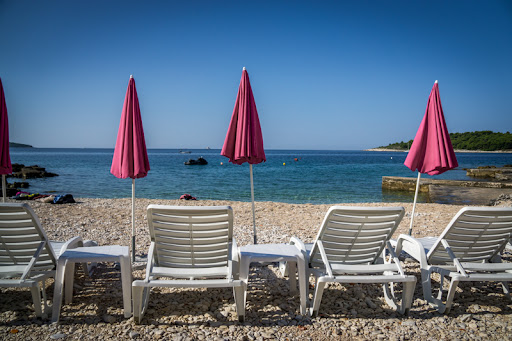 Das Hotel hat einen eigenen kleinen Strand, die Liegestühle und die Schirme sind ausreichend. Die Schirme sind alt, teilweise kaputt, der Wind weht alles davon, man muss es selber mit Steinen beschweren. Ist ok, aber eigentlich nicht meine Aufgabe (wie gesagt, bei dem hohen Preis was wir gezahlt haben!). Keine Toilettte, Dusche o.ä dort, dafür nur ein sehr kurzer Weg z urück ins Hotel bzw. ins Zimmer. Eine kleine Bar ("Jaz Bar") ist in der Nähe, da geht jeder hin, da gibt es Fassbier und Getränke - KEINE Snacks. Eine kleine Toilette, das ist ok.