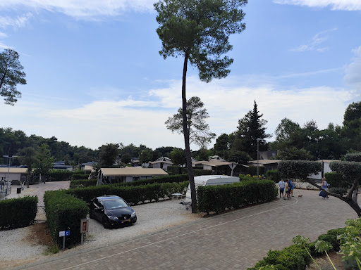 The resort is easy to find, the actual entrance with a large combination (car + caravan) less so, the turn is relatively sharp en the way through the barriers fairly narrow. We made our way to the reception - the receptionist was not necessarily welcoming, seemed a bit stressed. It was quite busy. We all have our 'off days' ;). Less charming was the fact we were asked to 'find' a pitch ourselves on the campsite. We were provided a map which was marked with two red zones which represented the areas with the pitches. There were markers which indicated the pitches - most very small or impractical due to a tree in the middle of the pitch or uneven/sloped pitches. After searching we found a spot on top of a small slope - it was difficult to get the caravan on that spot due to the gravel/rocks. The remaining spots did not get much shadow as trees are only lined in these places on the outer edges of the site which was a bit of a worry. We were relieved we found a spot; other guests who came after us were less fortunate. From our perspective, frustration around finding your own spot can be mitigated by allocating a spot for you according to the size of your caravan/tent and taking into consideration preferences. If other pitches are available, the guest than always can decide to take another pitch; at least one has been allocated a fitting pitch.