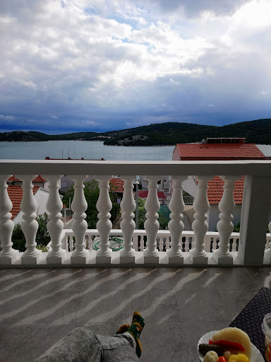 Great view from balcony. The room has everything you need. The host speeks english very good. The beach from camping is close and very beautyful and Slanica beach 10-15...